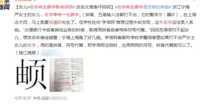 給孩子起名字的時候,最好看看是不是在《通用規範漢字表》裏面,現在《通用規範漢字表》總共有8105個字,如果不在裏面的字可能是屬於生僻字,那麼孩子去辦登機牌或者坐高鐵的時候,可能打不出來這個漢字,只能用問號來打,甚至有些人因爲起名用了生僻字,保研的時候都打不出那個名字,還要麻煩多跑幾個部門。