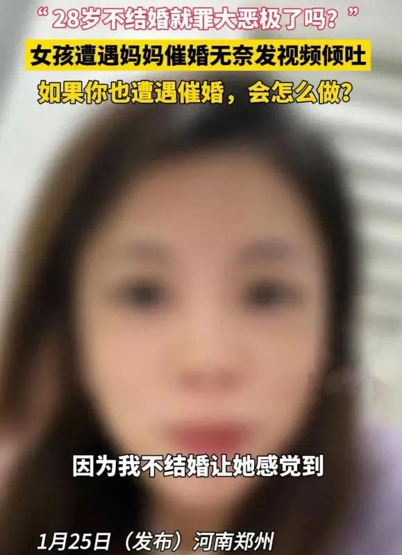 她發視頻稱,“28歲不結婚就是犯罪,單身過年比豬都難”