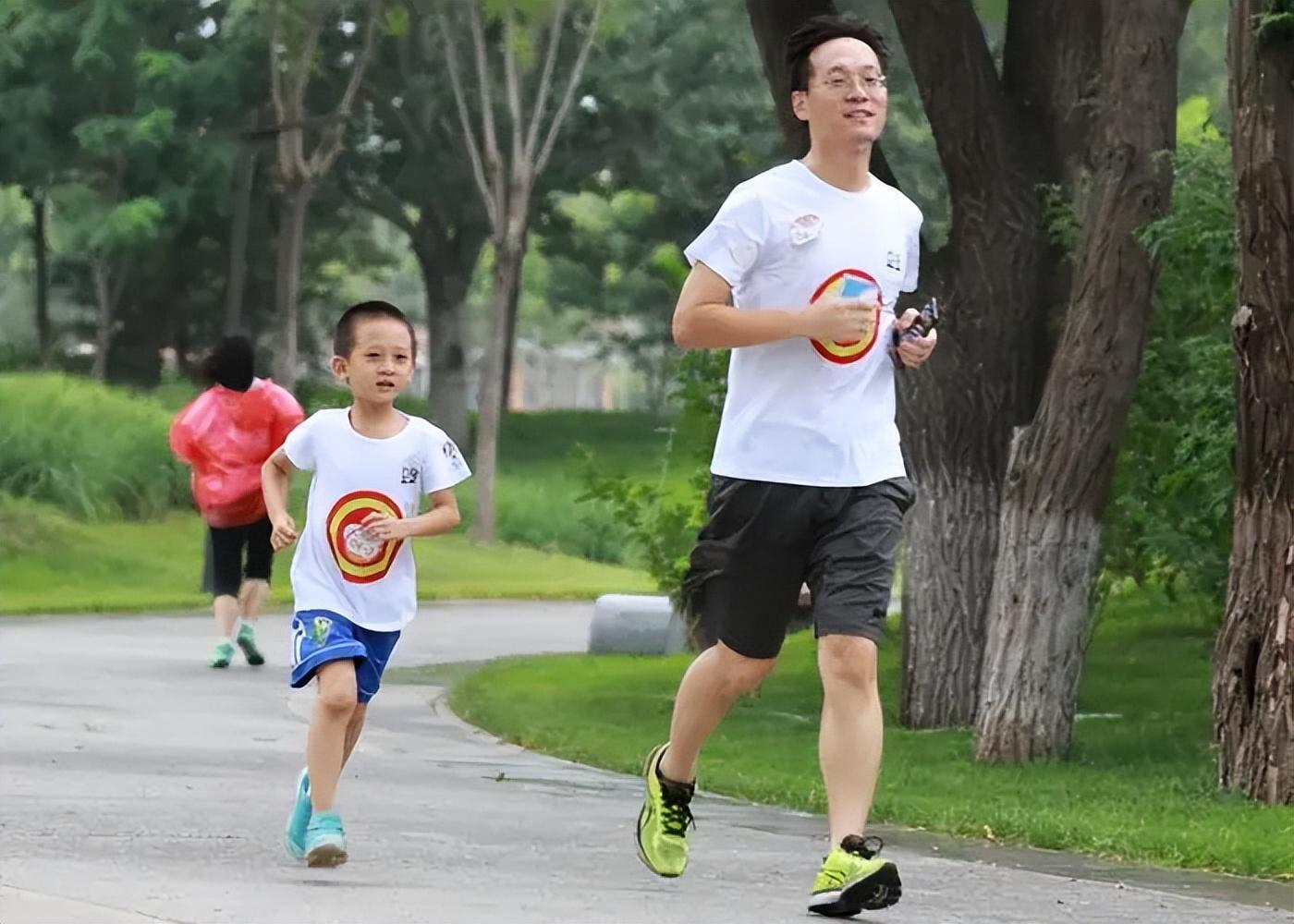 小區裏面,有一個爸爸每天帶着孩子在晨跑。
