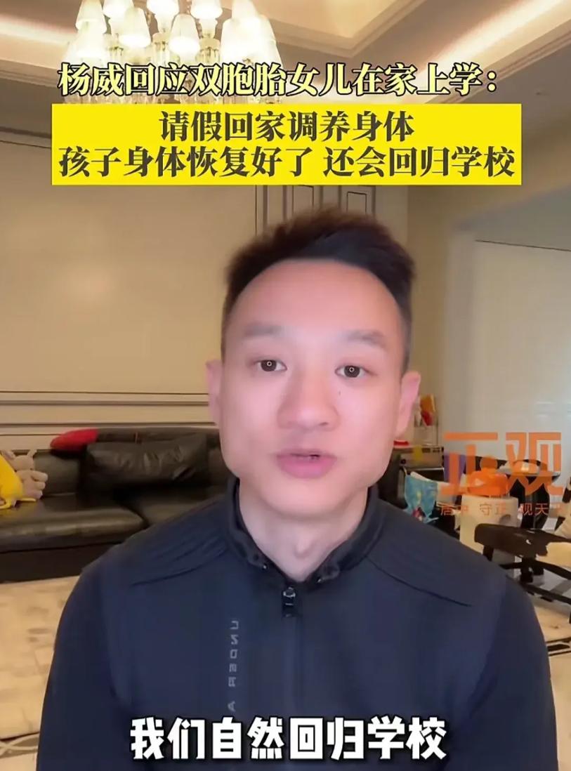 痛定思痛,楊威和妻子楊雲商量決定把雙胞胎女兒留在家裏面上學,主要是因爲孩子身體太差了,一去上學就生病,爲了避免孩子生病,決定留在家裏面請私教教孩子,也就是家庭教師,楊威也坦誠這也是無奈之舉,而且費用也比較高,生活的壓力也比較大。