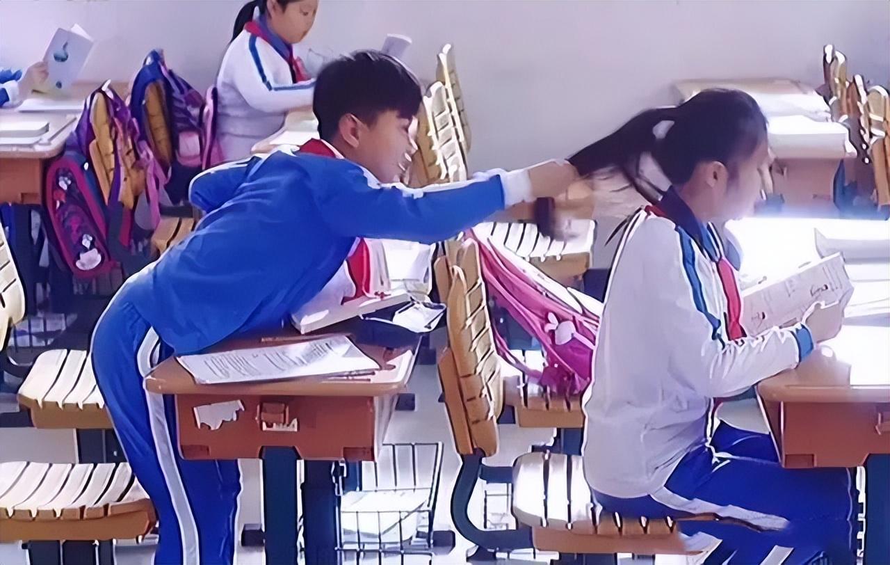 同事的女兒正在上小學二年級。坐在女兒身後的同學,是一位班裏有名的搗蛋鬼。這個搗蛋鬼上課不認真聽講,總是愛搞小動作。一會用筆扎人,一會又故意拽人頭髮玩。