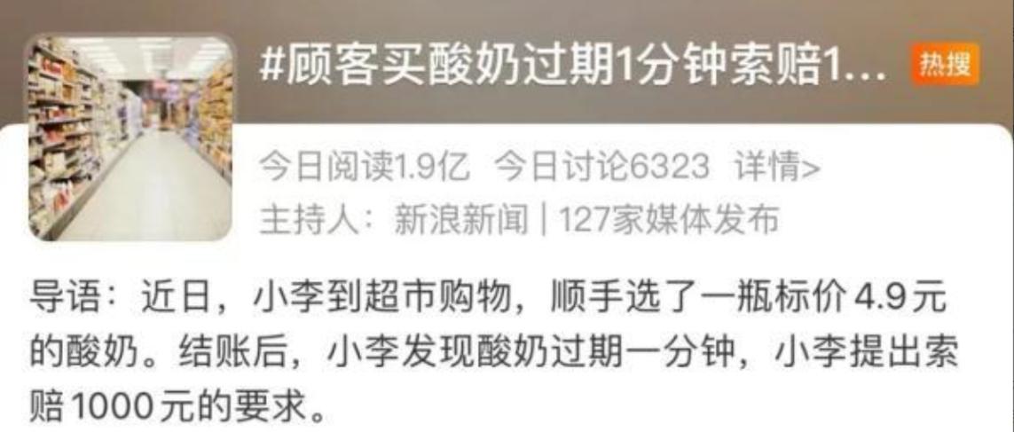 而他自己平時也挺關注網上的食品衛生的消息,聽這對姐妹說起之前網上有人買酸奶,過期一分鐘就賠400塊錢的案例他也聽過,兩姐妹去找老闆的時候,超市也是人來人往的,兩姐妹的聲音還蠻大的,不停地有人看過來。
