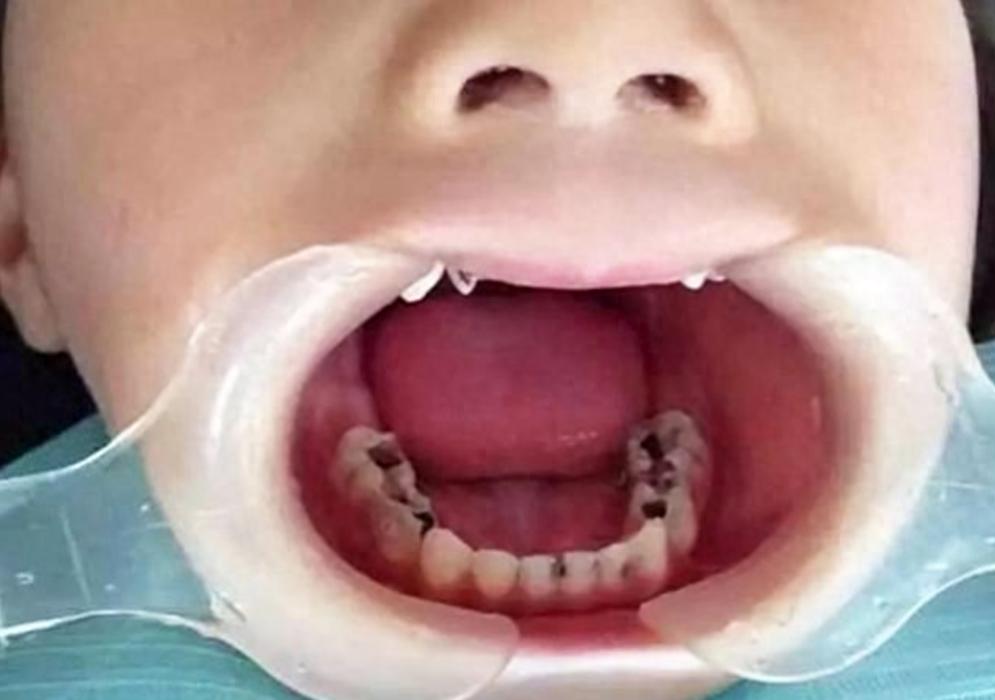 同事燕燕家兒子才3歲,嘴巴一張開,就能看到他那滿口黑牙,去口腔醫院看診時,被醫生告知:門牙都被腐蝕了,只剩下牙根了。