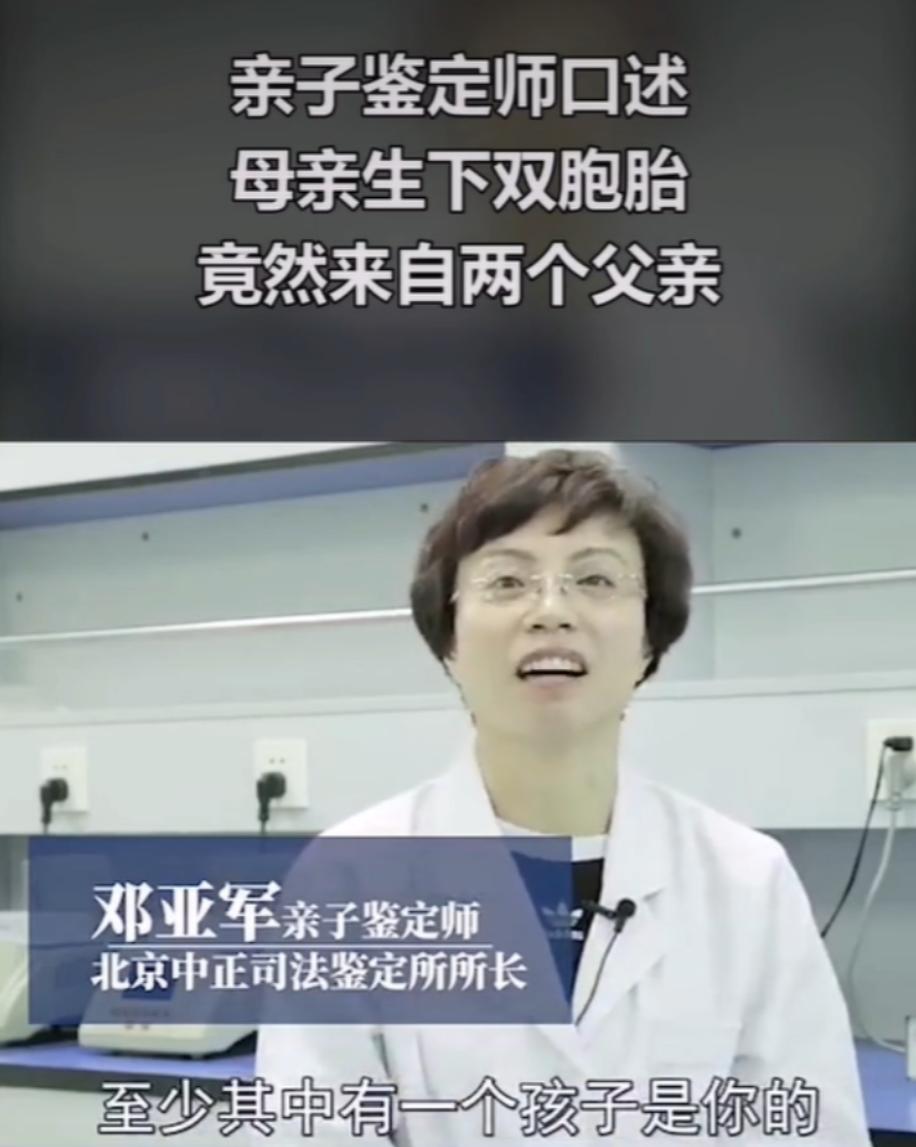 一個爸爸有一對雙胞胎,感覺雙胞胎長得不太像,於是他懷疑這兩個孩子都不是自己的,於是就悄悄地帶着雙胞胎去做親子鑑定,而親子鑑定結果出來之後,親子鑑定師鄧亞軍就跟他說:你還是蠻幸運的,至少有一個孩子是你的。
