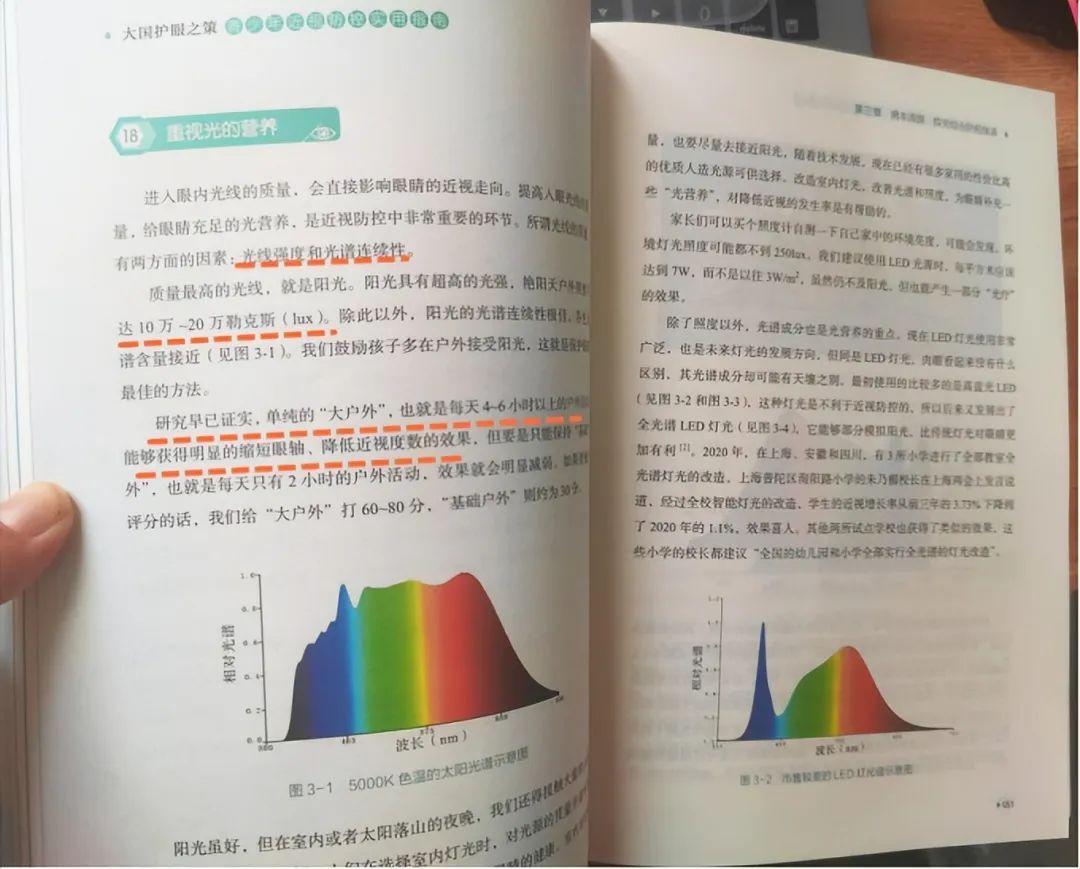 所以,物體在全光譜燈光下很少失真,讓孩子的眼睛觀察物體的時候,能處於很舒適、放鬆的狀態用眼。像我家以前是普通吊頂燈,孩子有時候在燈下看書,經常會出現揉眼的現象。