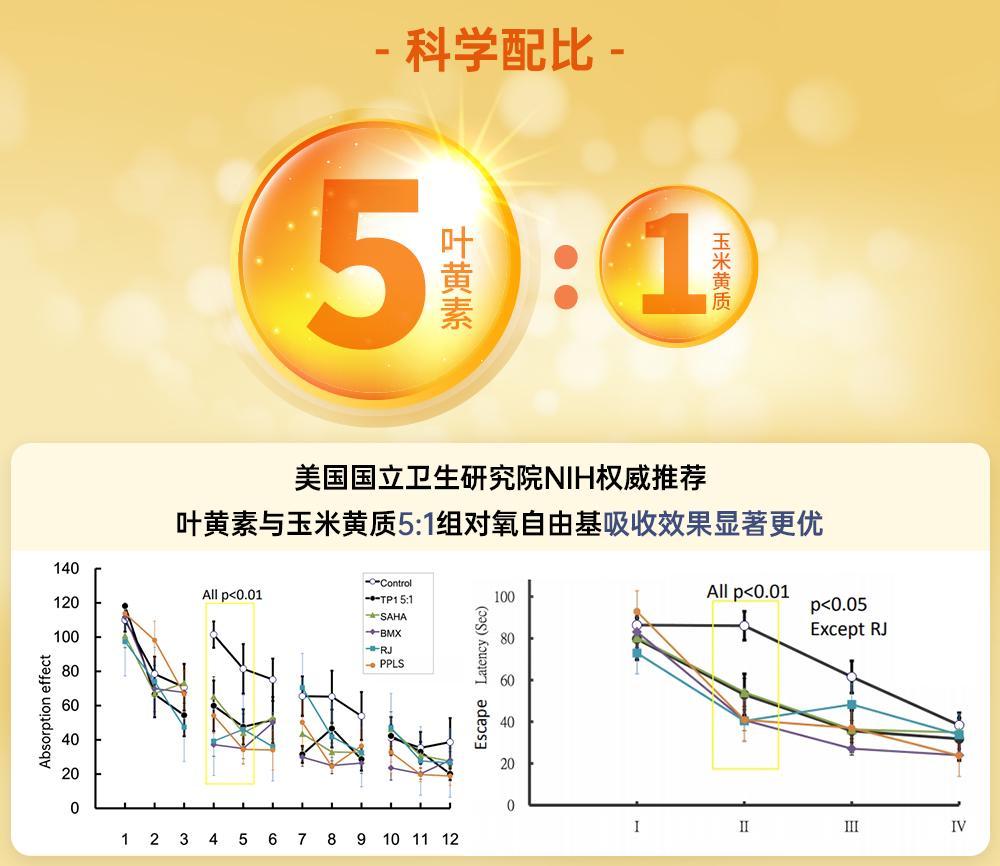 葉黃素酯和玉米黃質的配比,眼科專家們提出了 5:1 是黃金標準。