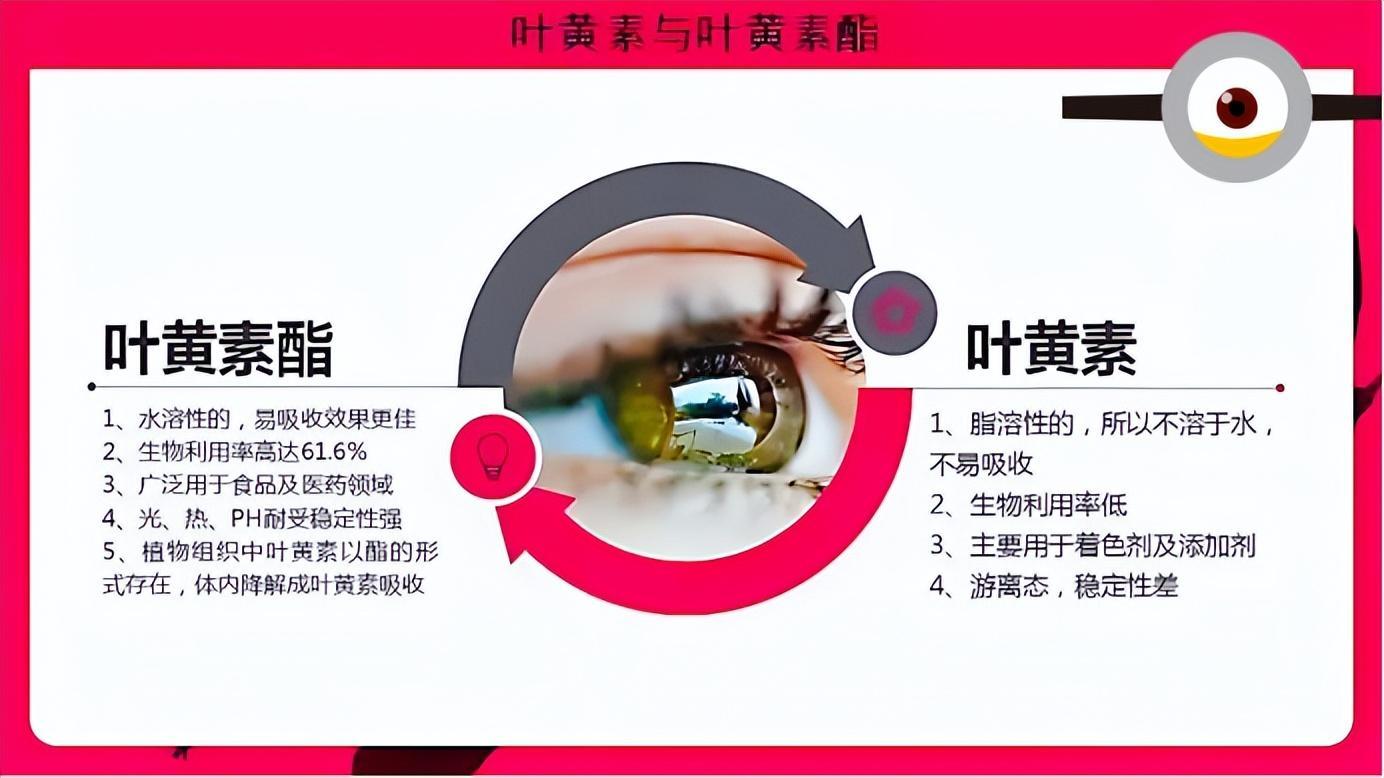 葉黃素酯是水溶性的,更容易被人體吸收利用。而且葉黃素酯是構成咱們視網膜黃斑區的主要色素,有着過濾電子產品帶來的藍光、降低色差、保護視力敏銳度的作用。