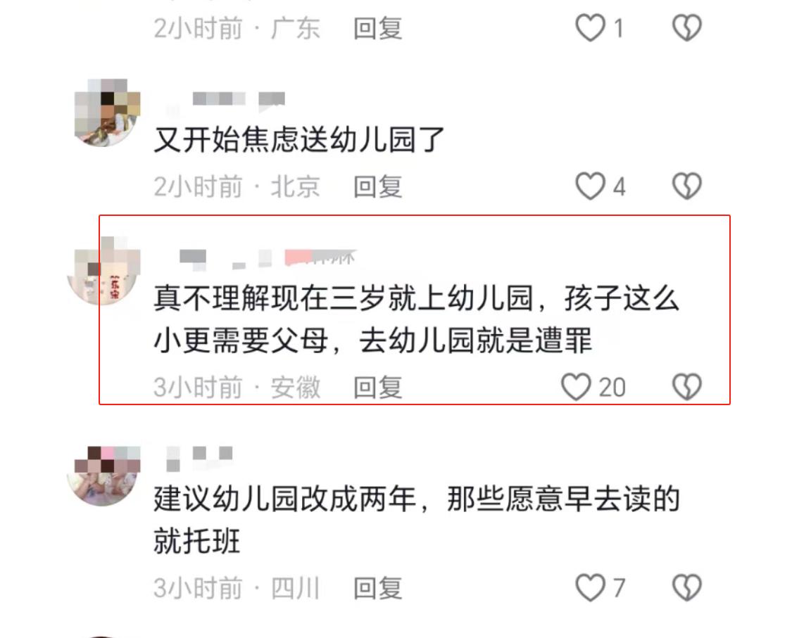 這一起事件可以說是一石激起千層浪,很多家長看到這樣的新聞就心寒不已,有個家長在評論區裏面就說:三歲爲什麼要上幼兒園?簡直就是讓孩子去遭罪的,簡直是拔苗助長。