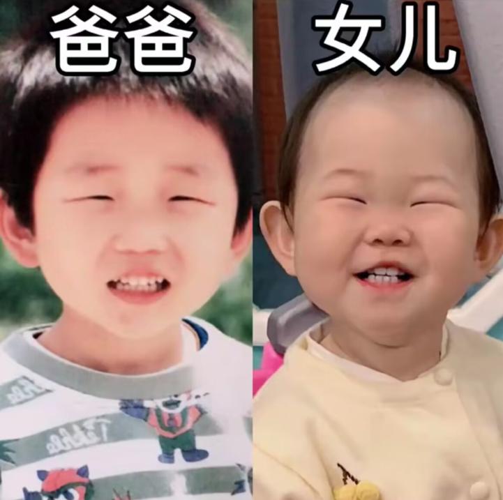看這對父女的眼睛,長得也太像了吧,只是顏值有點捉急的爸爸,意識到問題嚴重性後,央求女兒:答應爸爸,長出自己的風格好嗎?