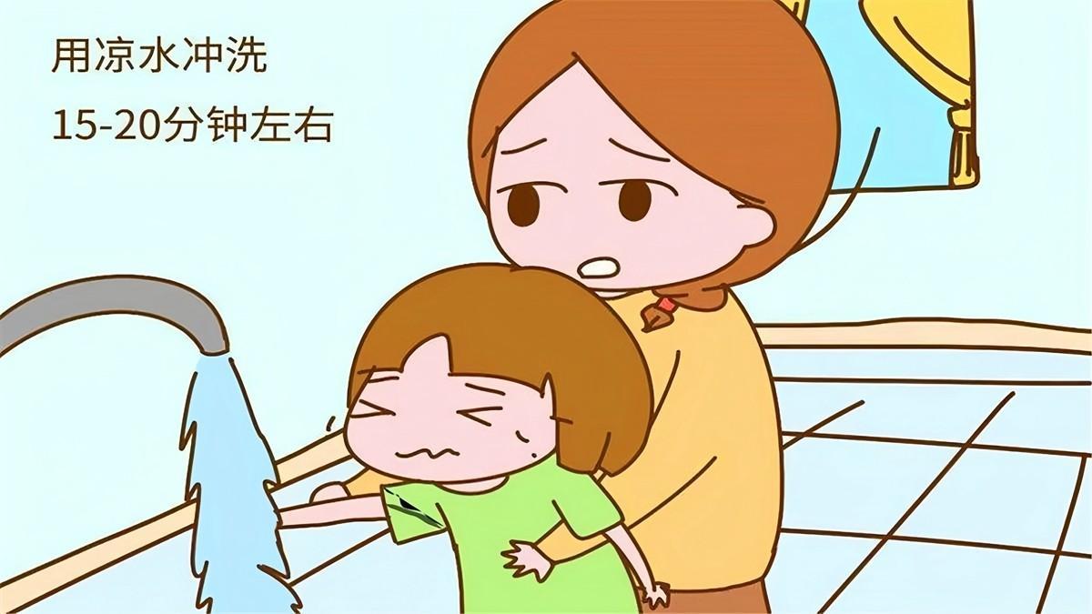 如果孩子被燙傷,我們需要立刻幫助孩子撤離制熱源,並用冷水沖洗燙傷部位15-30分鐘。這樣可以起到散熱降溫的作用,同時還能避免高溫滲入深層皮膚。