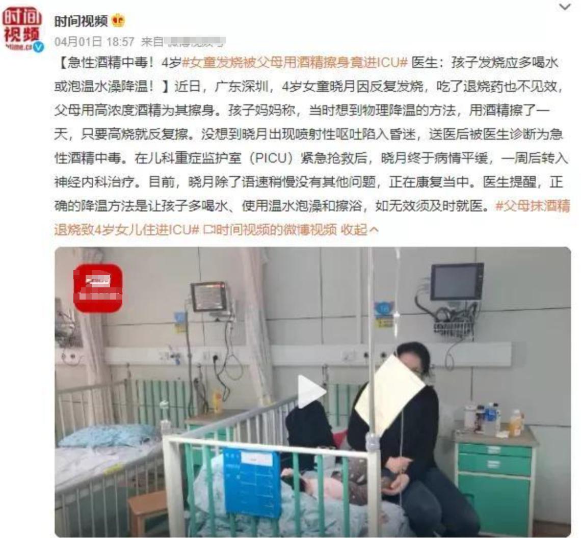 4歲女孩發燒,父母的物理降溫致娃中毒進ICU,醫生:大腦損傷