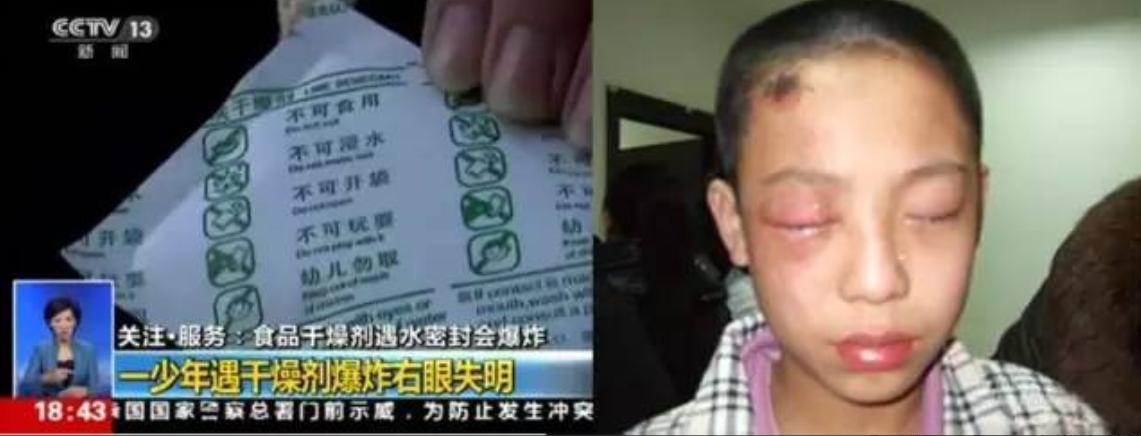 而也有醫生接診過誤食生石灰乾燥劑的孩子,這個喉嚨都被腐蝕了,都有點爛了,孩子說疼。也有眼科的醫生接診過,生石灰乾燥劑物濺入眼睛的,導致眼角膜都受損了。