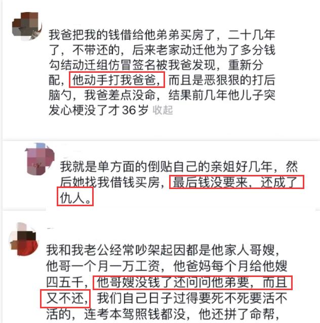 所以說,親戚之間真的很容易因爲借錢鬧掰,大家對外借錢時,一是要看情分,二是要看人品,三還要看償還能力,兄弟姐妹亦是如此。如果光有情分,沒有人品跟償還能力,你還借錢出去,那不是別人難爲你,而是你自己蠢呢。