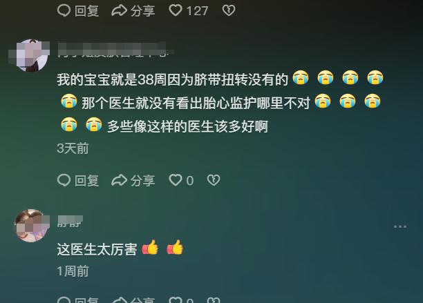 而評論區裏面有一個媽媽就提到,自己的孩子就是38周因爲臍帶扭轉沒有的,那個醫生沒有看出胎心監測哪裏不對,她自己更是不懂,所以我們在孕晚期還不僅僅要進行胎心監測,也要數胎動。