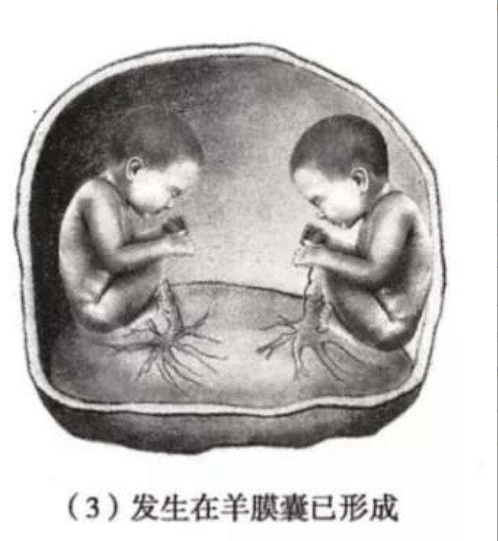 這時候羊膜囊形成了,所以這兩個胎兒是共用一個房間,也就是在一個單間裏面有兩個孩子,可能會發生搶營養。