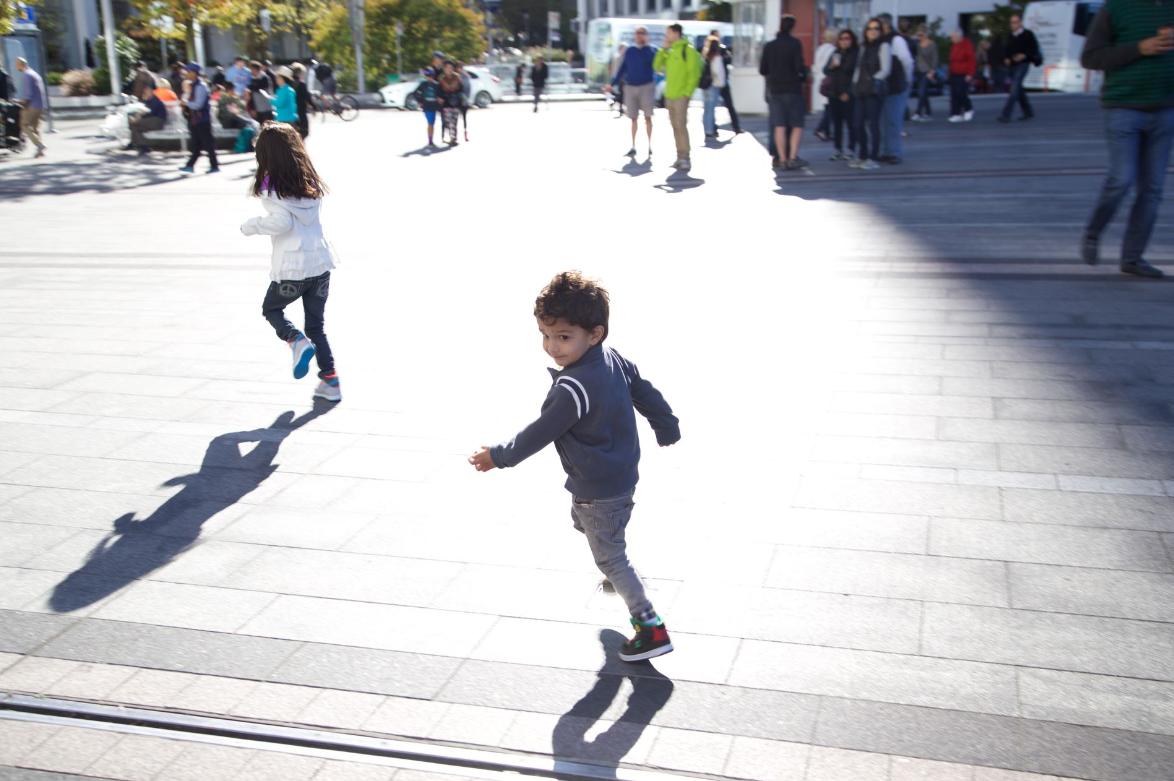 因爲哥哥玩的玩具電動車,所以這個電動車跑得比較快,牛牛也跟着哥哥跑,而廣場上人比較多,轉眼就看不到爸爸了,牛牛開始還有點緊張,但是想起爸爸媽媽跟他說過,如果在外面找不到爸爸媽媽,那麼就等在原地等爸爸媽媽。