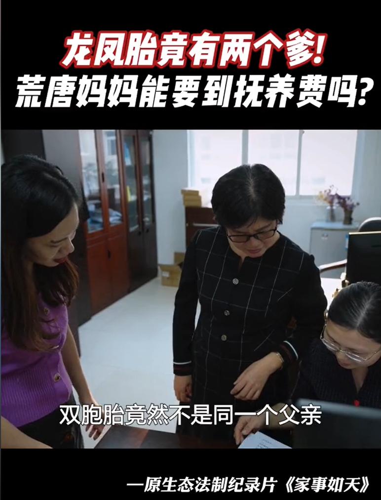 CCTV-12法制節目《家事如天》曾經報道過一個讓人覺得匪夷所思的案例,一對自然受孕出生的龍鳳胎居然是同一個媽但是不同的爸爸,也因此這個荒唐的媽媽被離婚了。