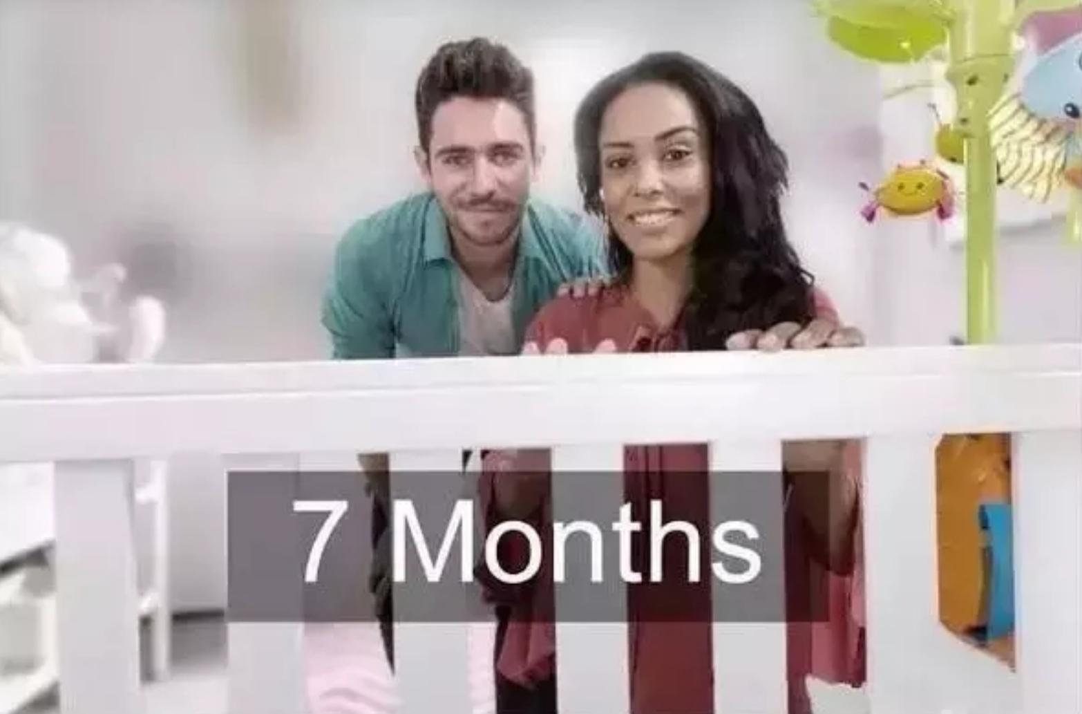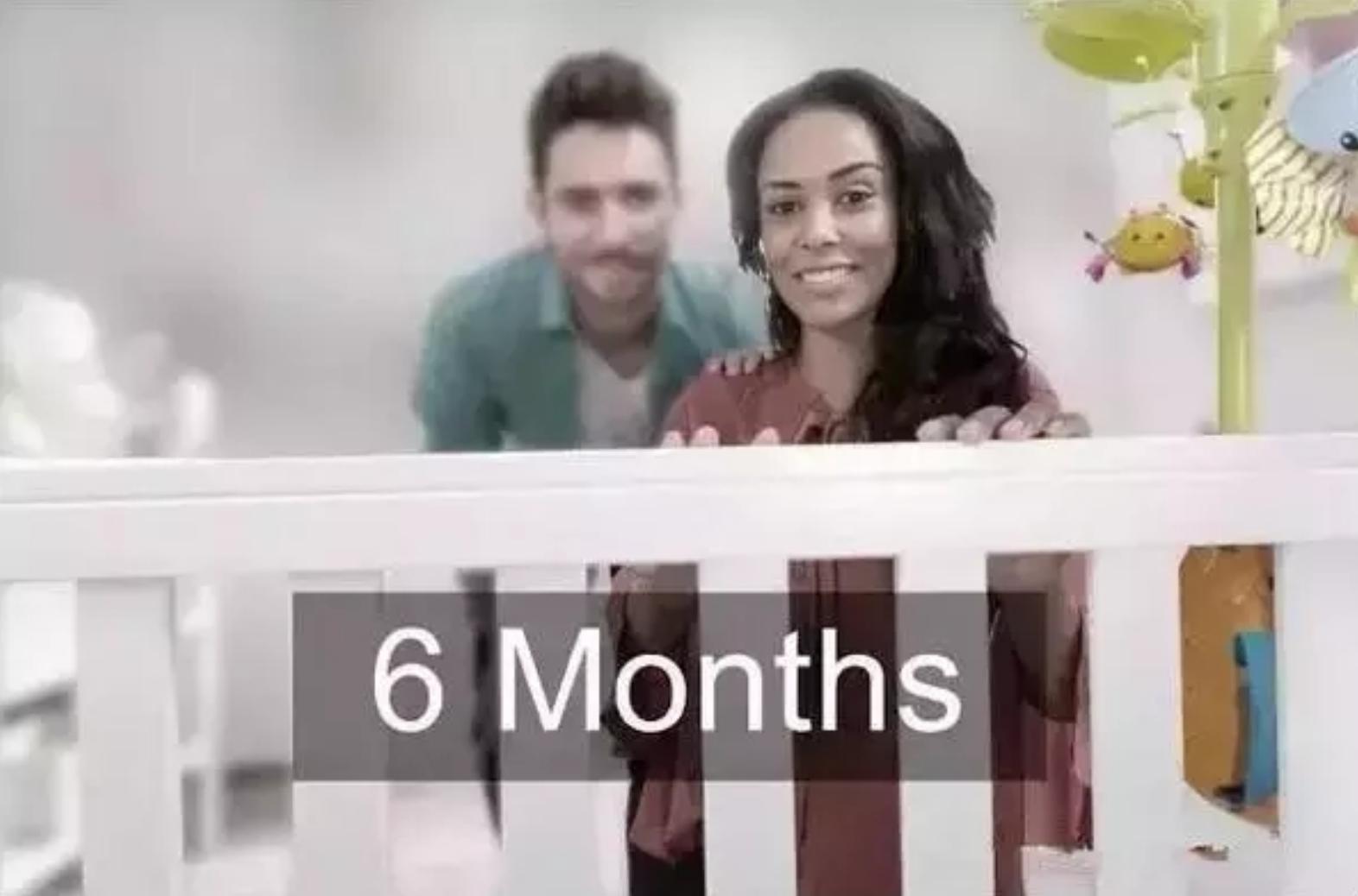 到了孩子半歲的時候,已經能夠坐直起來,坐在他的小牀上,不僅能夠看到一個清晰正在對他微笑的媽媽,還看到後面緊盯着他的爸爸。