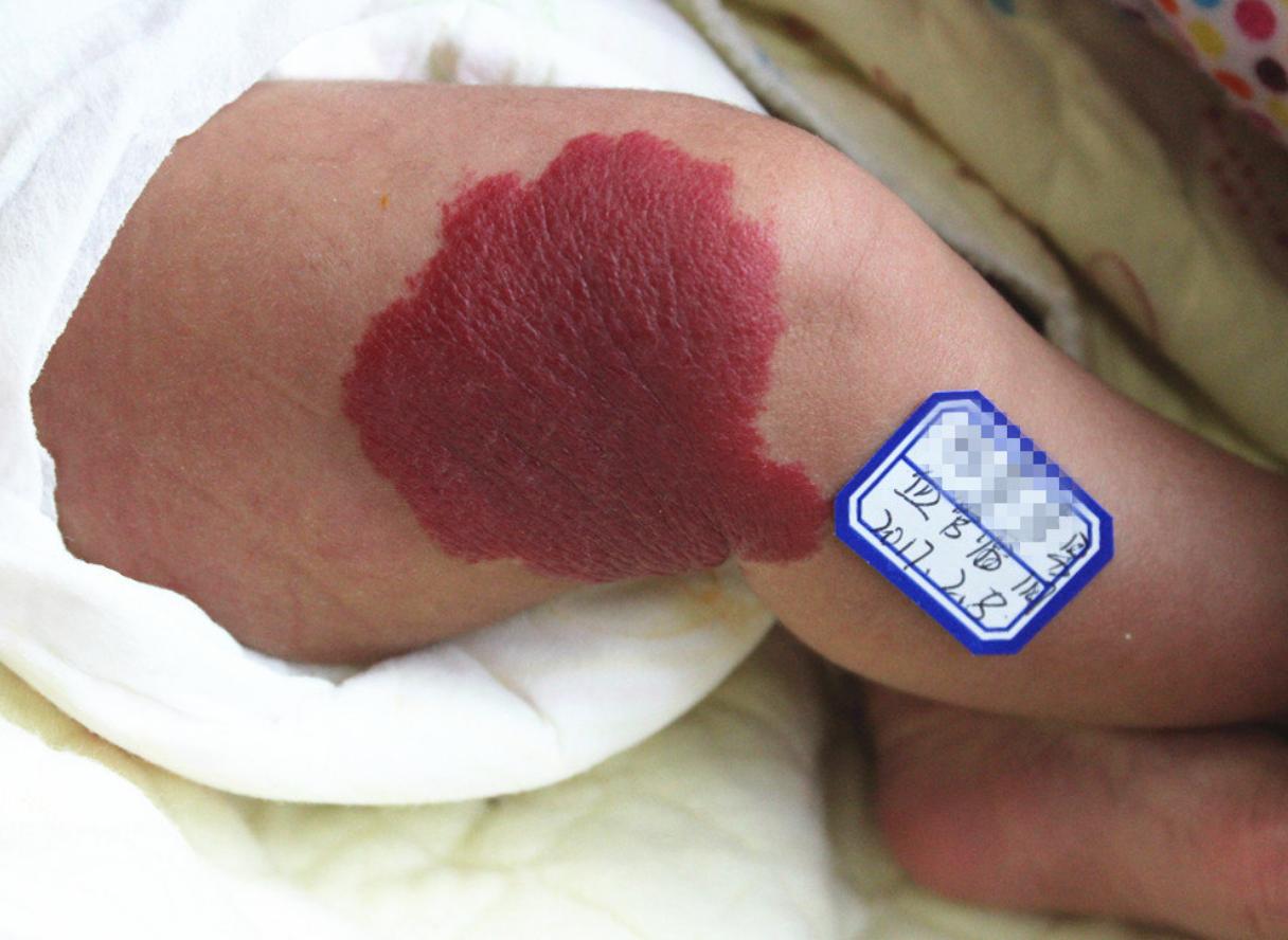 第四種就是胎記出現破潰出血,這樣主要常見於血管瘤的胎記。