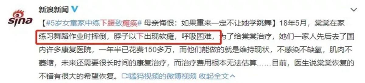 這樣的消息,讓小姚夫婦很難接受,而醫生隨後也告訴小姚夫婦:“你們糊塗啊!孩子低於7-10歲彆着急學舞蹈,以免造成肌肉拉傷或脊髓損傷,這是常識,你們當父母的太不負責任了。”