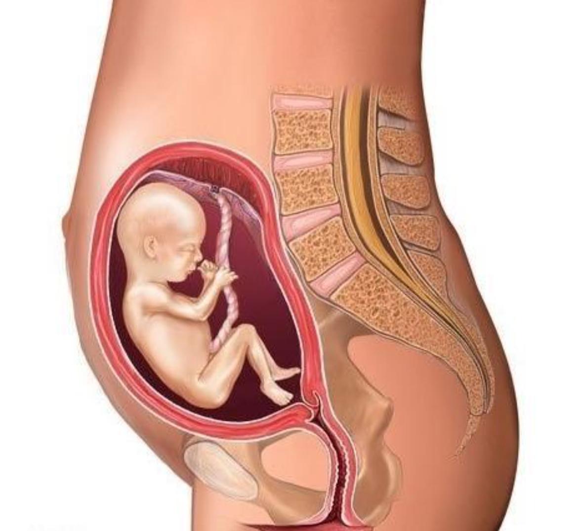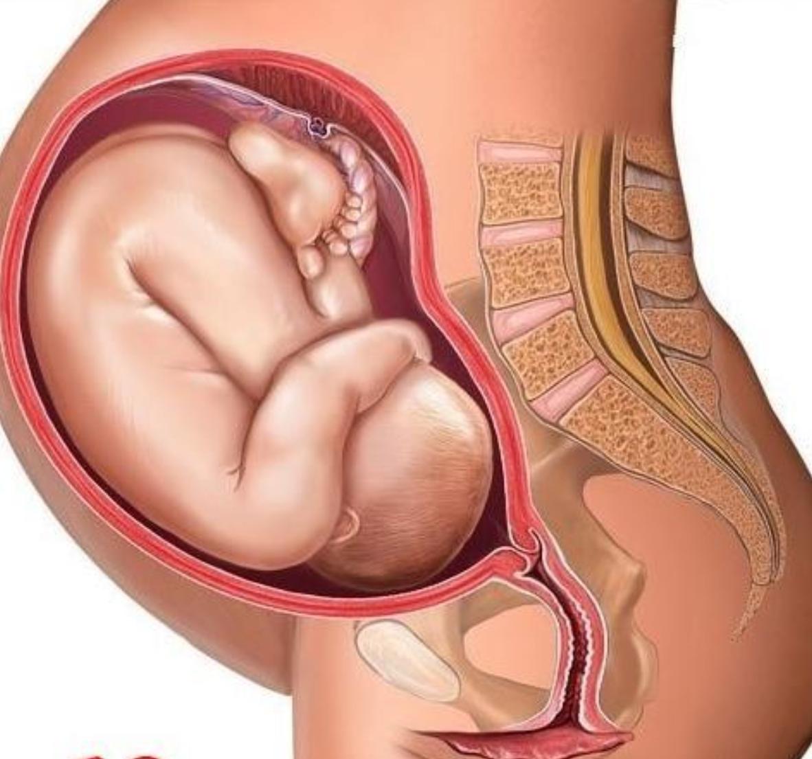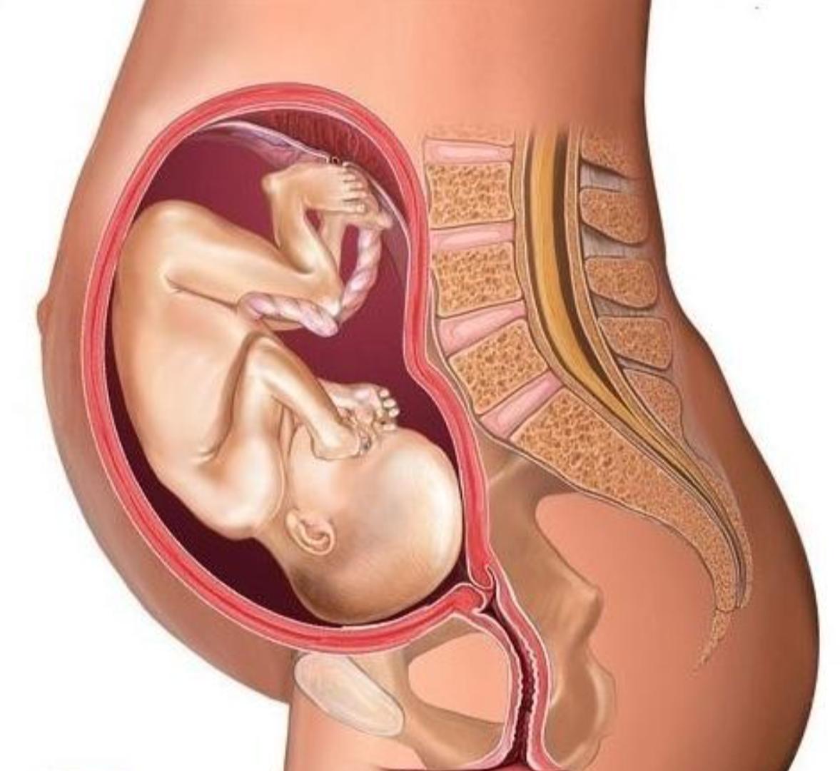 媽媽的肚子已經被撐得很大了,脊椎被拉伸向前,這時候媽媽走路有點像企鵝一樣,而胎寶寶在裏面其實也沒有太多的空間來活動了。