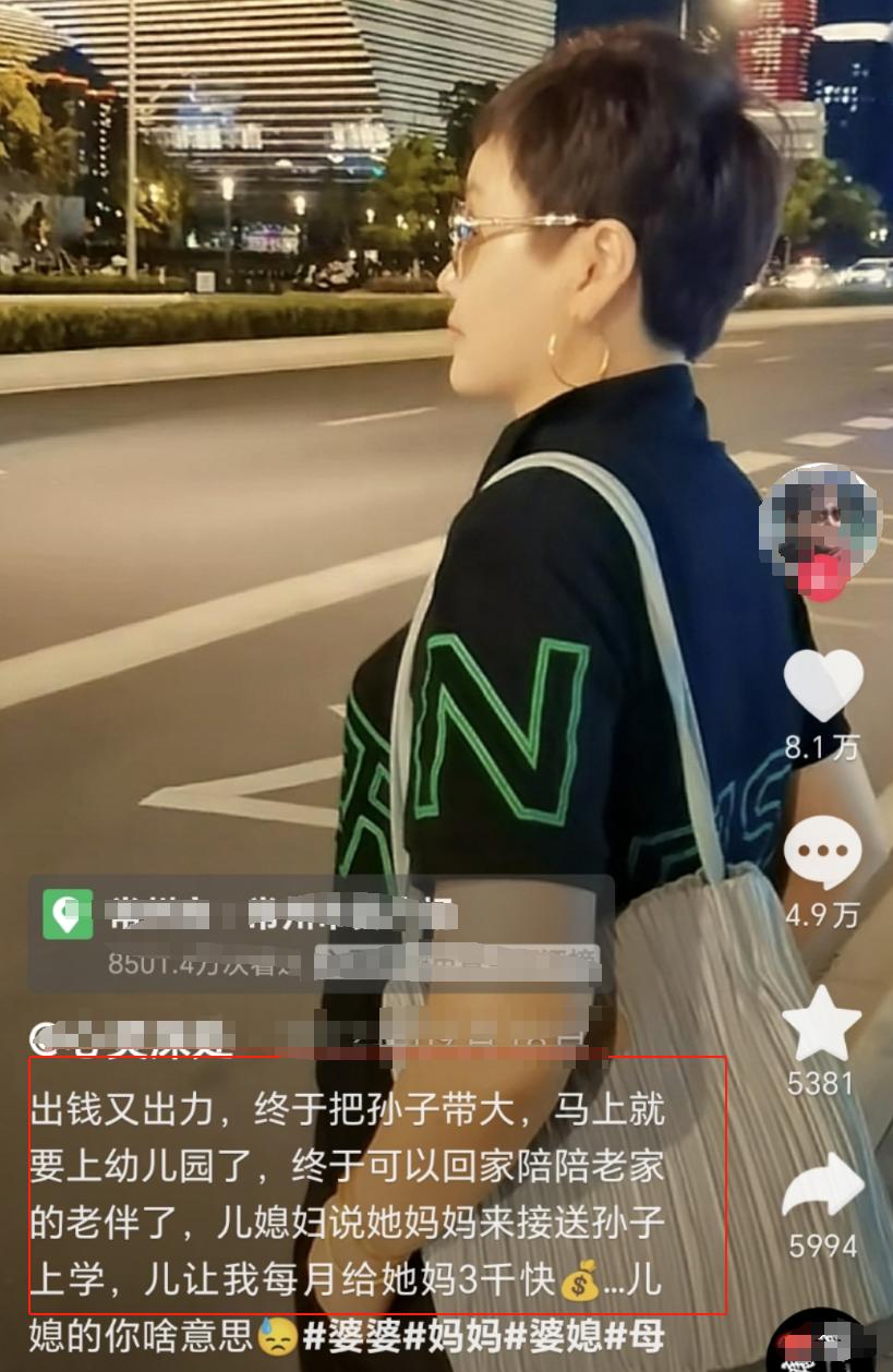 兒媳婦非常理直氣壯地覺得:自己生的兒子是李大媽的親孫子,跟她的兒子姓張,覺得兒子就是老張家的孩子,所以養孩子帶孩子就應該是老張家的責任,現在自己的親媽過來幫接送孩子,就應該給工資。