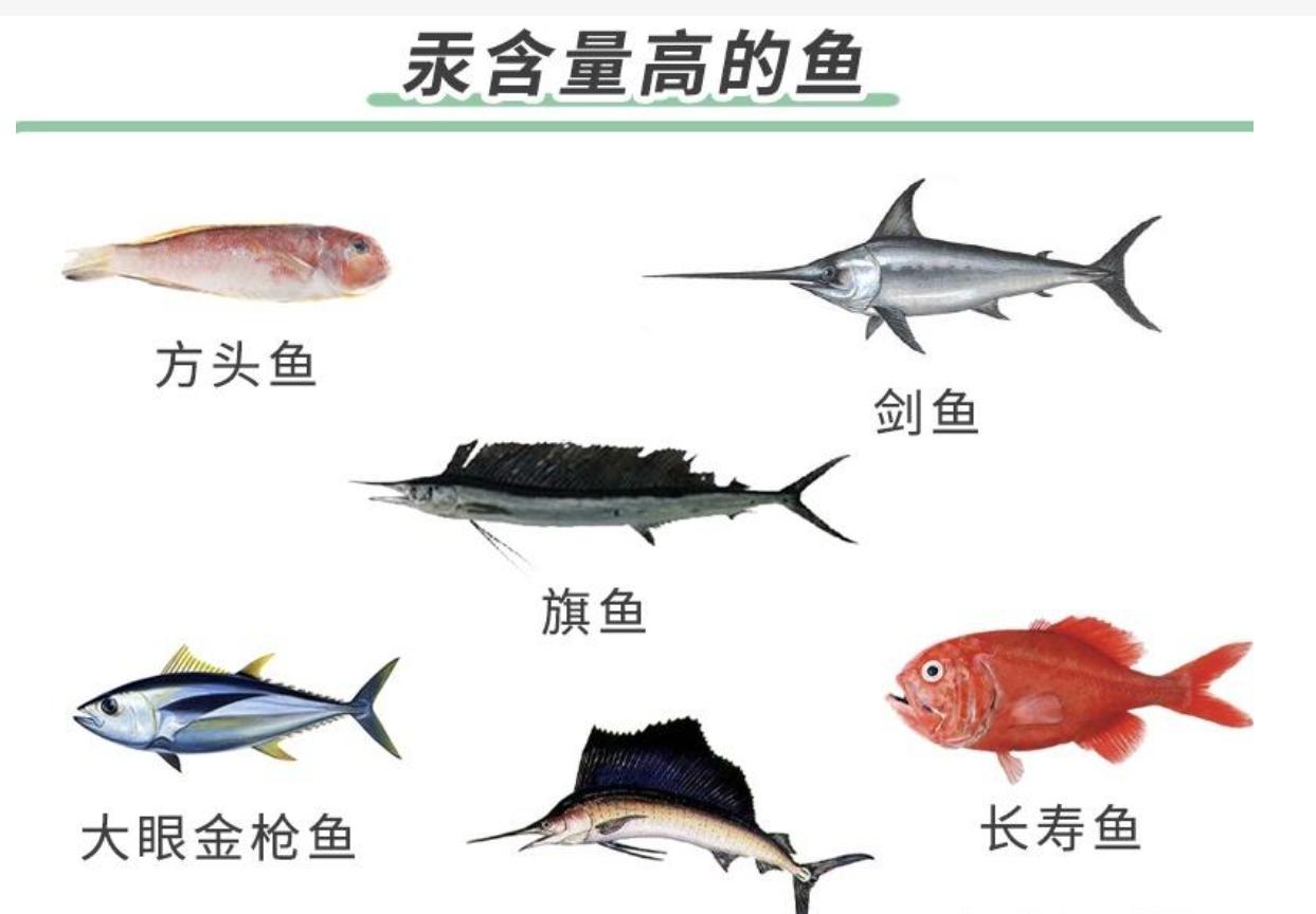 美國FDA就曾經提醒過,最好不要喫7種魚,其中有鯊魚,方頭魚,大眼金槍魚等等,因爲這些魚在海洋生態的食物鏈中是屬於食物鏈的頂端,也就是它們會喫小魚,而小魚身上的汞又聚集到它們身上,所以它們身上的汞含量比較高。