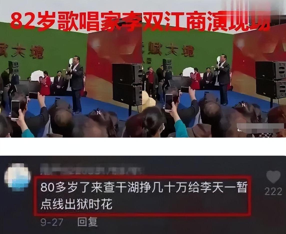 有網友發現李雙江現在在頻繁地接商業演出,要知道李雙江之前可是個國內非常知名的藝術家,現在既然爲了錢而接商演,說明老藝術家也知道自己的兒子以後想有大的成就是比較難了,爲了讓兒子以後有更好的生活,他不得不開始爲兒子以後做準備。