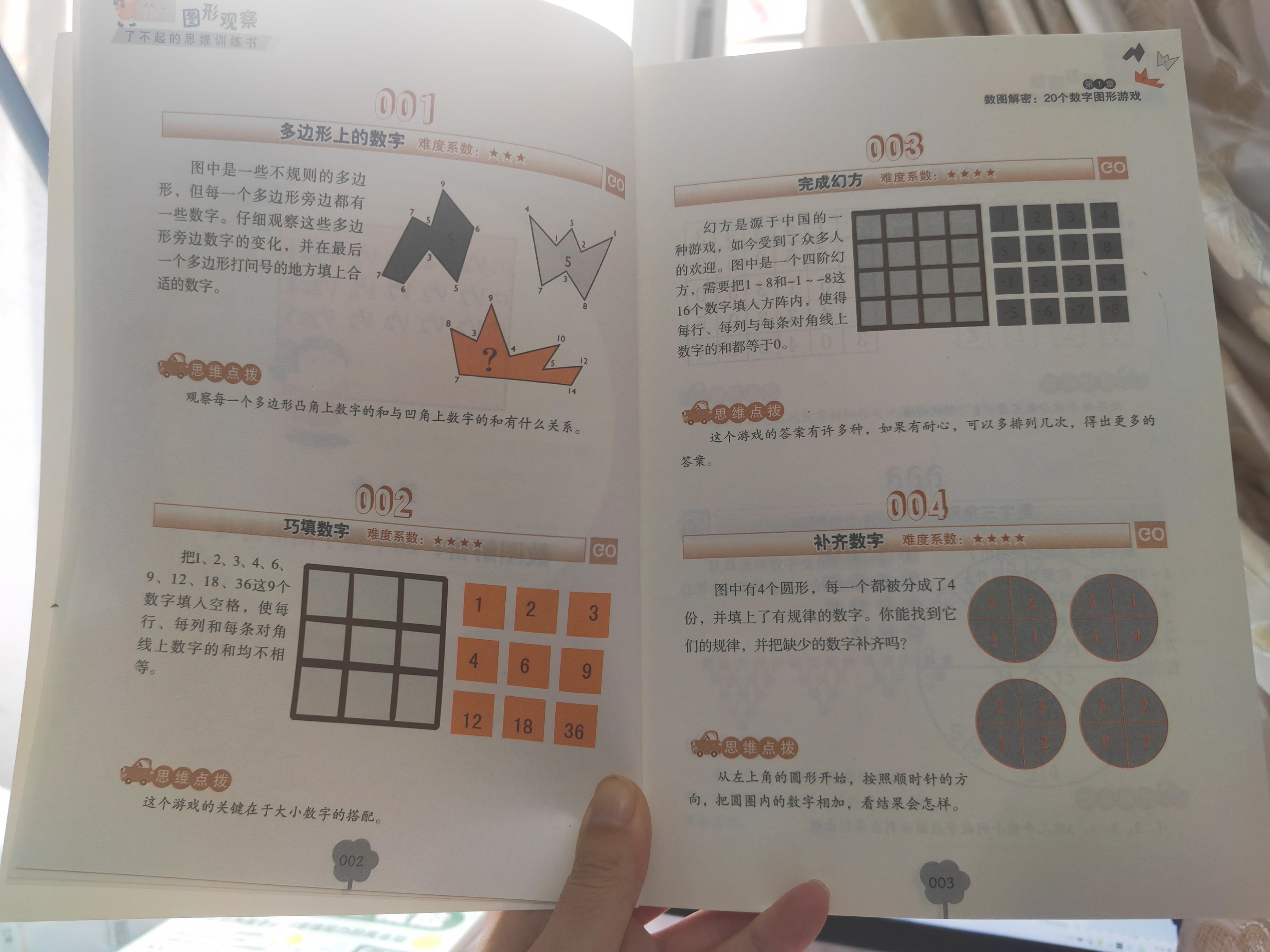 比如,圖形觀察這冊書,有20個數字圖形遊戲,奇妙的三角形、神祕的符號、數字推理等。
