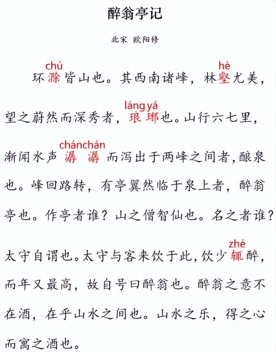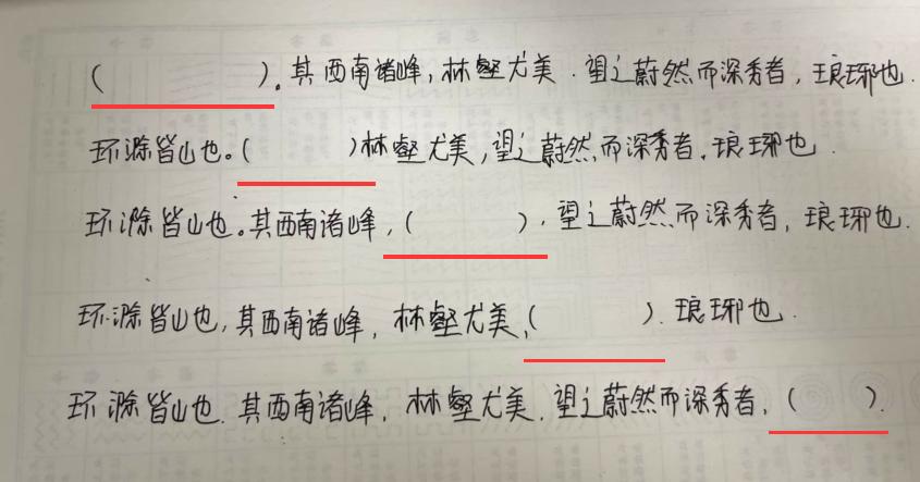 填空法其實很簡單,主要就是在記憶對象裏鎖定記憶目標,給大家舉個例,九年級上要學的這篇歐陽修的《醉翁亭記》,是一篇要求背誦的文言文,孩子一般會怎麼背誦呢?死記硬背、理解記憶後再背誦?這些都能達到記憶目的。