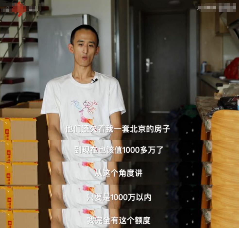 他提到當時如果父母答應他在北京買房的話,現在房子已經值1000多萬了,所以現在父母欠他一套房子,他就理所當然的問父母要錢。