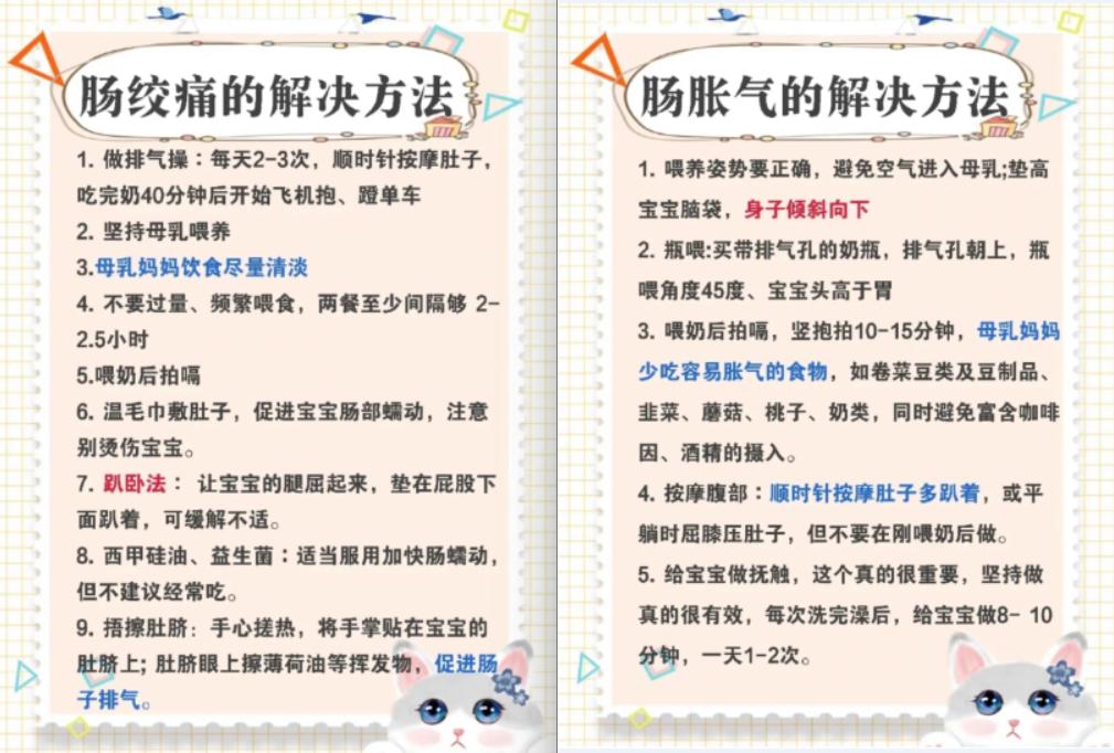 若是觀察寶寶存在:腸鳴音很強、哭聲大而急促,雙手握拳、使勁兒、肚子鼓脹等,就可能是中招了,家長可以採取飛機抱、做排氣操、聽白噪音等方法來幫寶寶緩解。