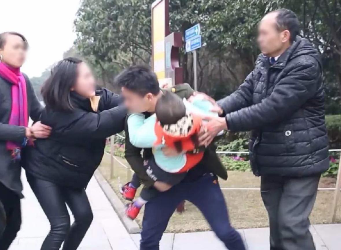 沒想到這時旁邊衝過來一個50多歲的大媽,一把抱住秋怡的兒子,並且嘴裏嘟囔着:你跟我兒子吵架,就把我的孫子給抱出來,我們家三代單傳,怎麼可能給你把孫子抱走,我的孫子我要抱回去,孩子一邊掙扎一邊叫媽媽,但是這個大媽說奶奶帶你去買剛纔那個變形金剛的玩具,你媽不給你買,奶奶給你買。