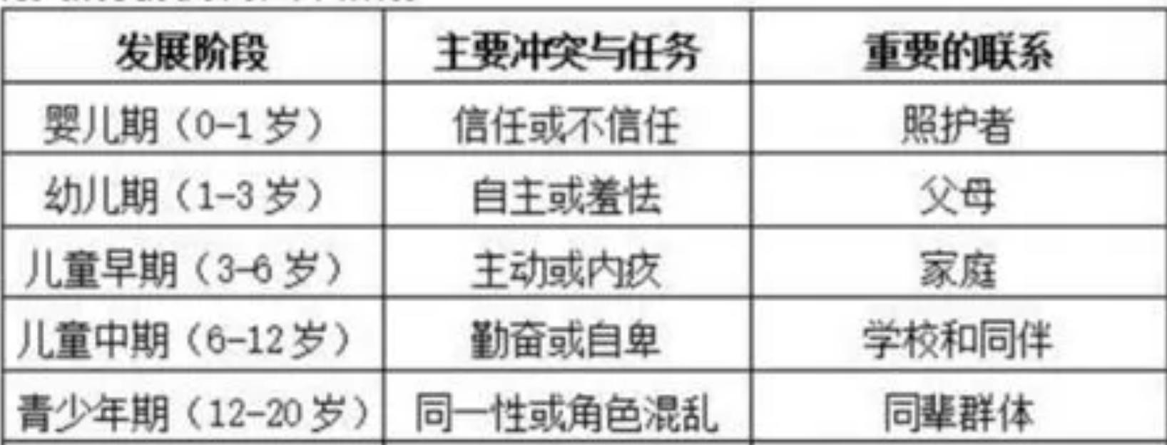 心理學家埃裏克森就曾經把孩子成年前分爲5個階段。