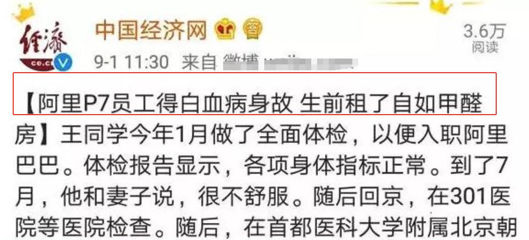 比如之前鬧得沸沸揚揚的阿里P7員工得白血病身亡,而生前是租了自如的房子,而自如的房子裏面甲醛是超標的,極有可能是因爲使用的裝修材料不合格。