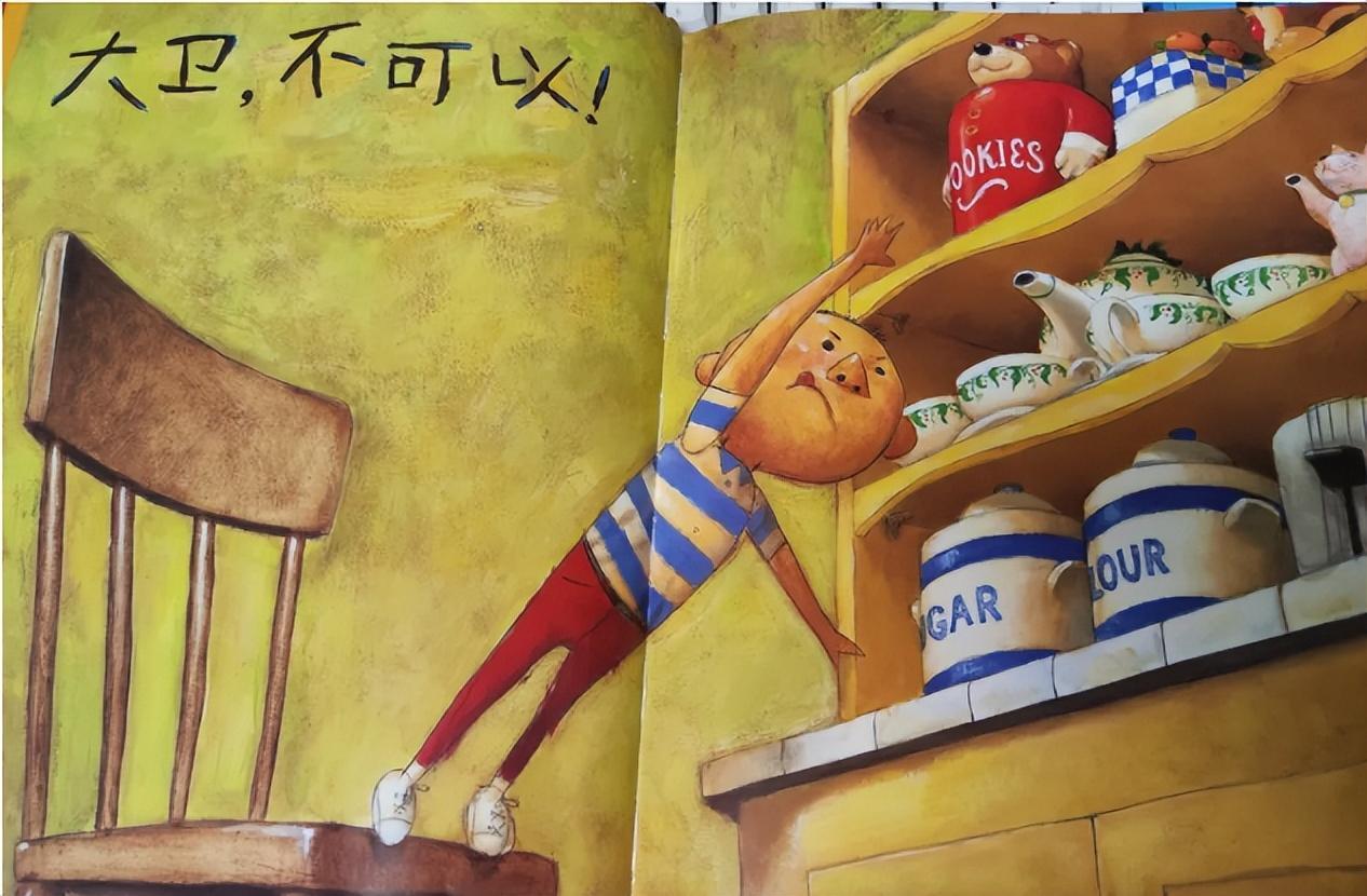 燕子家孩子2歲多,在她看來,《大衛,不可以》這本繪本不能給孩子讀,否則孩子就會模仿大衛的行爲: