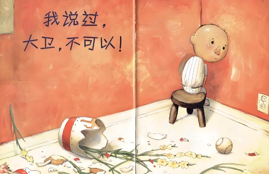 女兒很喜歡這本繪本,文文爸記得給她至少講過幾十遍。繪本從頭到尾,只是描述了大衛的錯誤行爲,當女兒看到和自己一樣調皮的大衛,就會產生共鳴。