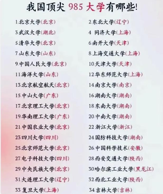 “985”大學,可是咱們國家頂尖大學的代表,就像是高考界的“超級巨星”,每所學校都有自己獨特的魅力與實力、獨特的招牌與絕技。