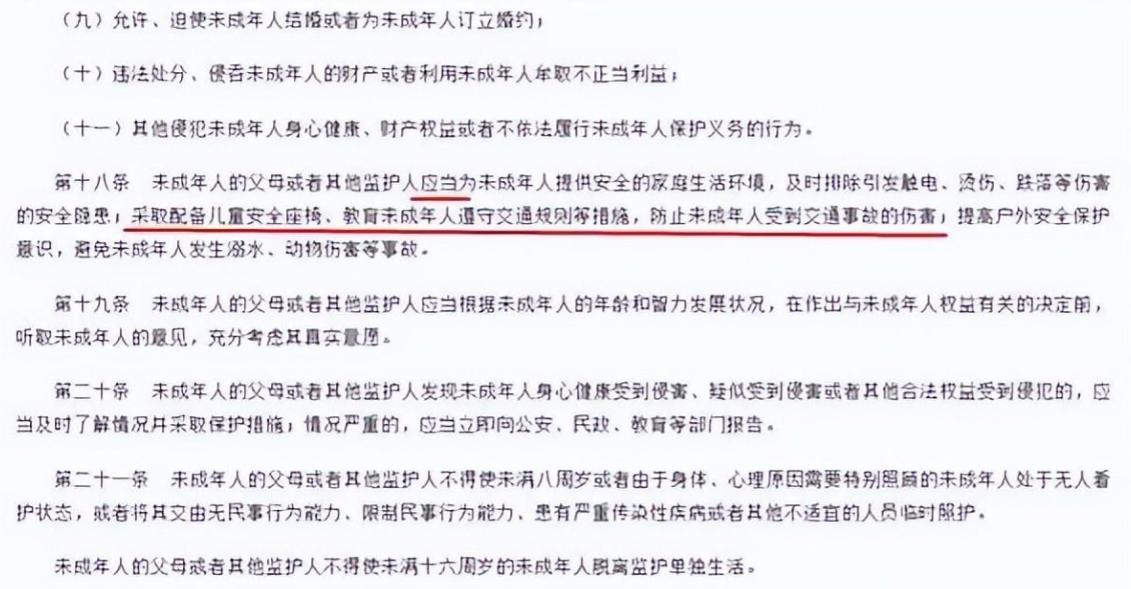 《中國人民共和國未成年保護法》第二次修訂版於2021年6月1日實施,其中規定了採取配備兒童安全座椅、教育未成年人遵守交通規則,防止未成年受到交通事故的傷害。