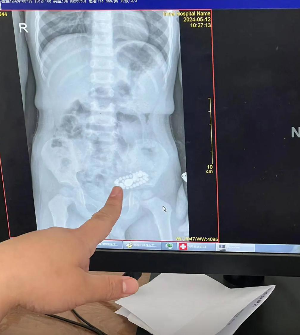 媽媽就半信半疑地帶着孩子去醫院做CT檢查,結果醫生給孩子做了個腹部CT,發現孩子的腸道里面就有一串金屬類的珠子,雖然不知道是不是媽媽的那串手串,但是看模樣就跟媽媽的那串手串一模一樣。