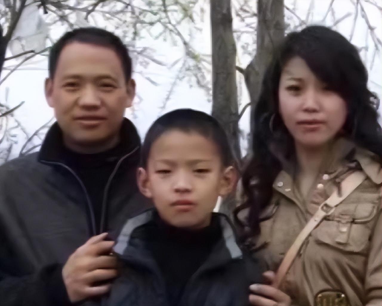 男孩曬出兩張照片,第一張是他幾歲的時候,一家三口的全家福,一家人穿衣打扮都很有年代感,面對鏡頭,他們的表情也很木訥。
