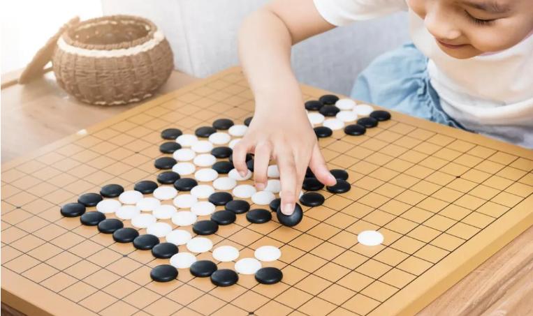 女兒的同學歡歡來家裏玩,看到桌上有五子棋,就拉着女兒來下。