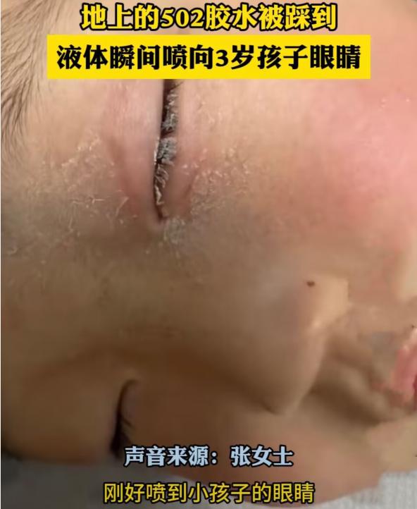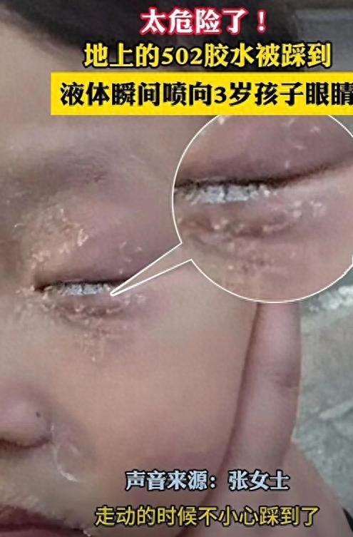 也真是倒黴,被踩中的502膠水不偏不倚的噴向了孩子的左眼。