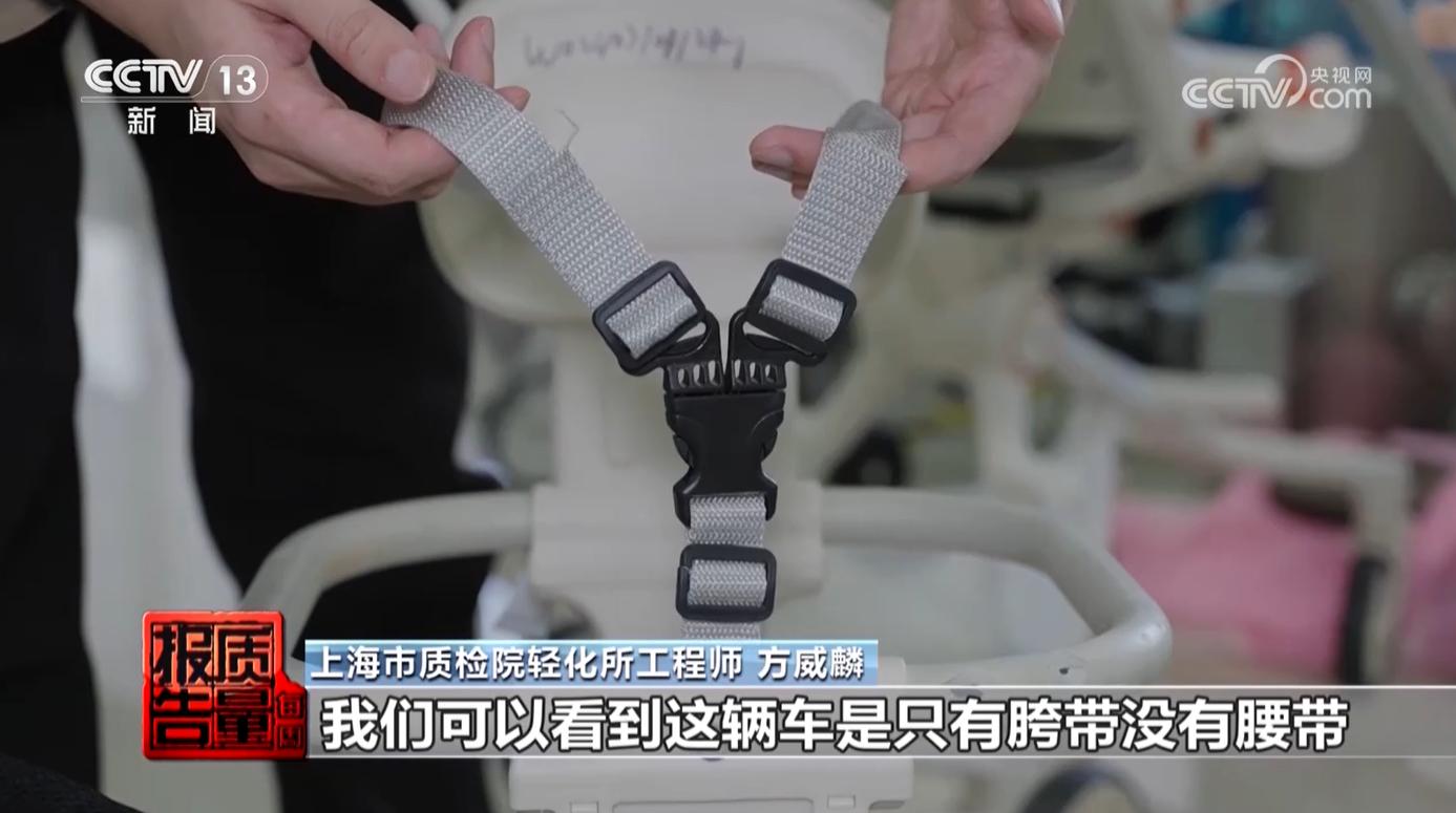 在這一次檢測中發現這些產品有42.3%的產品不符合這個安全帶的要求,因爲孩子坐在遛娃車上是要需要有腰帶和胯帶的,有的車子有胯帶沒有腰帶,有的車子有腰帶沒有跨帶,那都是不合格的,容易導致孩子墜地,造成傷害。
