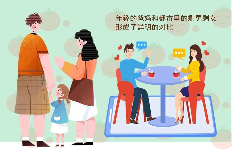 我們看到的這些年輕的爸爸媽媽,和都市裏的大齡剩男剩女,形成了鮮明的對比。
