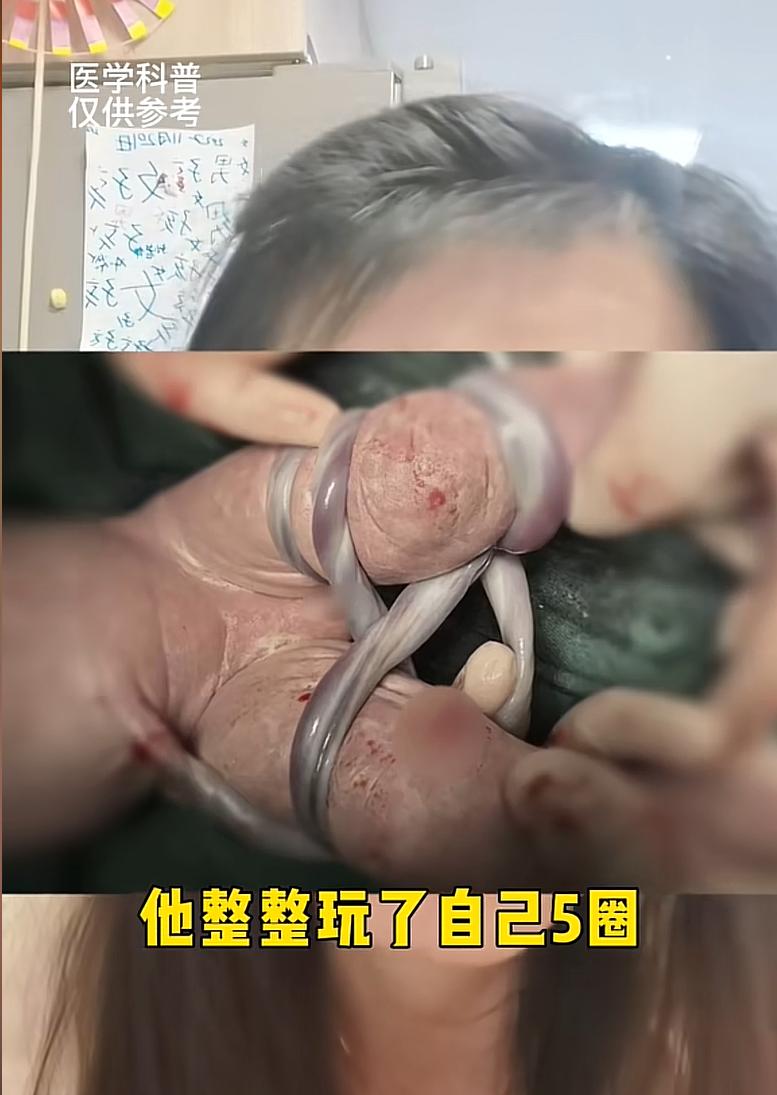 所以劉醫生在B超看到這個孩子的臍帶已經繞在腿上好幾圈了就趕緊剖腹產,快刀斬亂麻把孩子剖腹產剖出來。