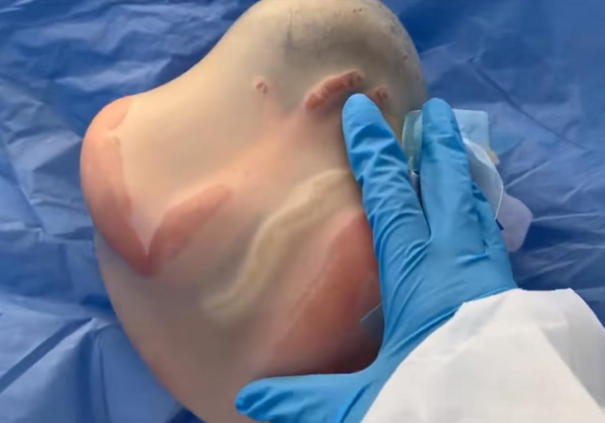 所以醫生就趕緊給孩子把這個羊胎膜給擠破了,然後用工具來處理孩子口腔和鼻腔的羊水,沒一會兒孩子就哭出聲了。