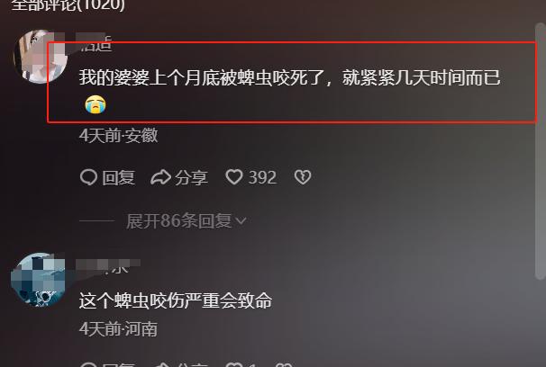 網友@恬適也提到:婆婆上個月被蜱蟲咬死了,也僅僅是幾天時間而已。