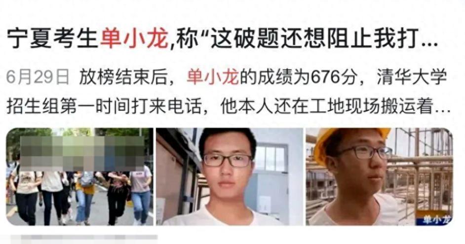 2018年在寧夏一個高考考場外面,一個記者採訪了一個叫單小龍的考生,這個考生在從考場出來的時候非常興致勃勃,在接受記者採訪的時候,輕鬆留下一句:就這垃圾題目,還想阻止我打工?