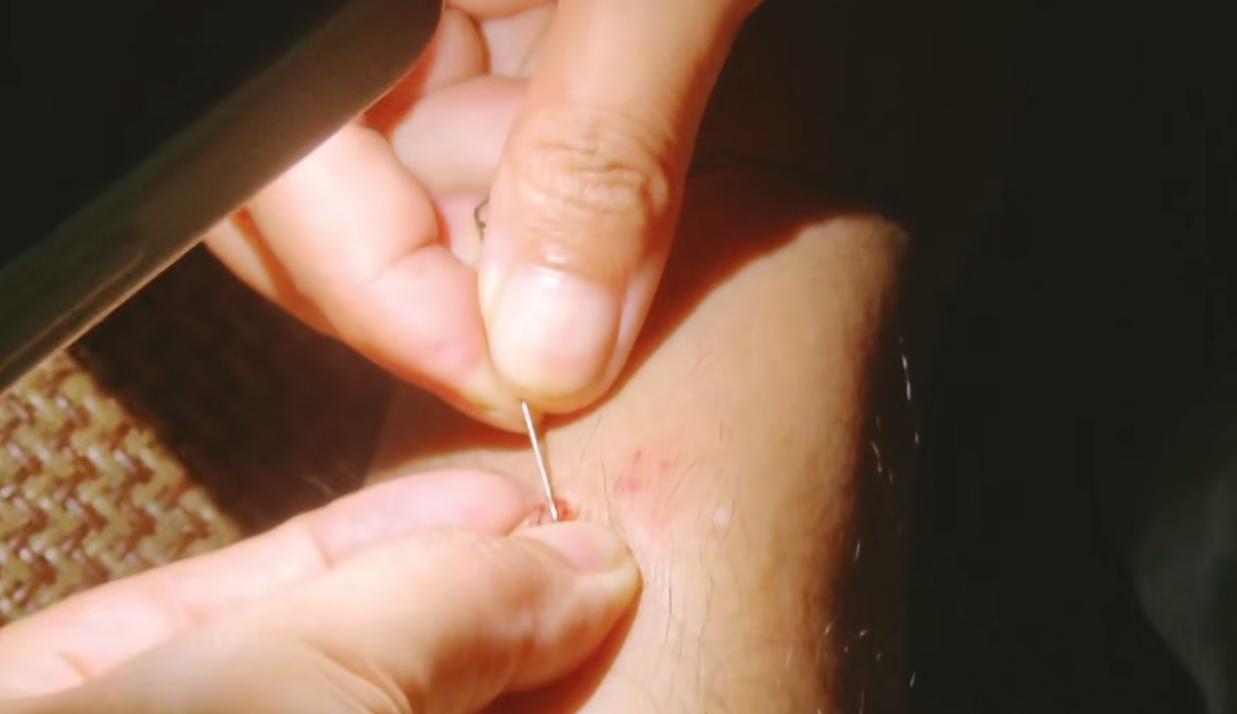 第1點:用乾淨的針把蜜蜂刺挑出來